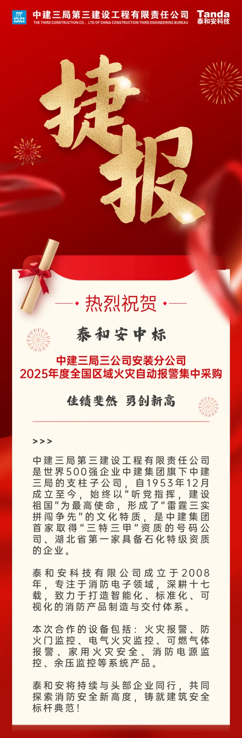 中标喜报 | 泰和安中标中建三局三公司集采!