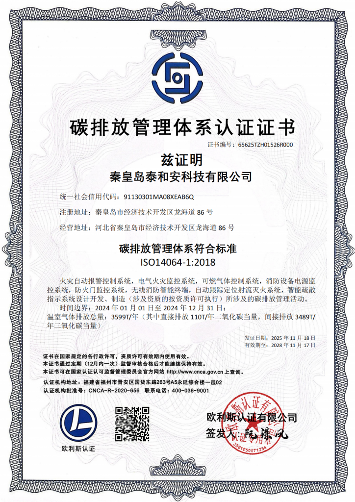 近日,秦皇岛泰和安科技有限公司(以下简称“泰和安”)今日宣布,公司正式通过权威认证机构严格审核,成功获得《温室气体核查管理体系认证证书》与《碳排放管理体系认证证书》,标志着公司在碳排放管理领域迈入标准化行列,为行业低碳转型树立了标杆。碳排放信息披露如下: